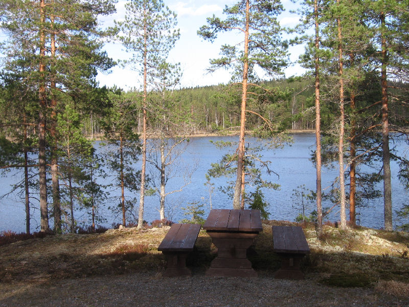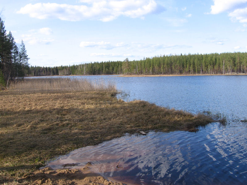 kansallispuiston kupeessa olevan Iso Auninen järven rannassa. Iso Auninen on puolisen
