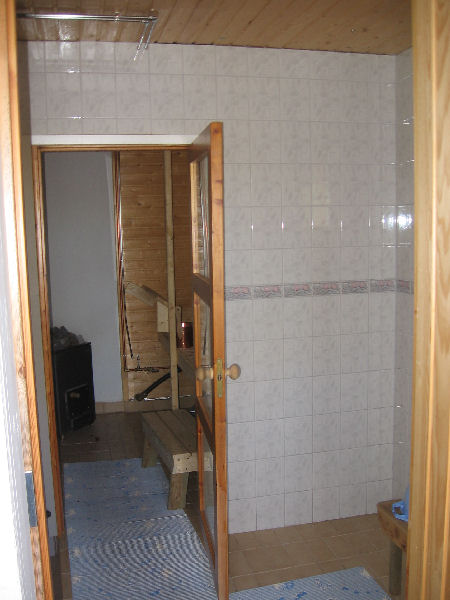 Rannasta löytyy pienehkön pukuhuoneelisen rantasaunan lisäksi myös lämmitettävä kylpytynnyri,