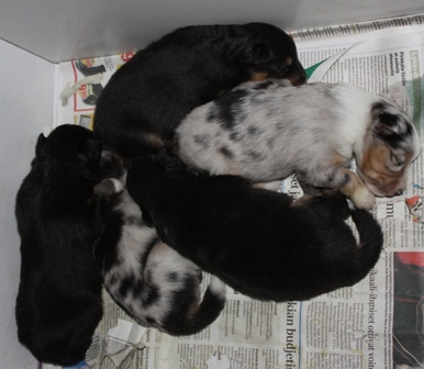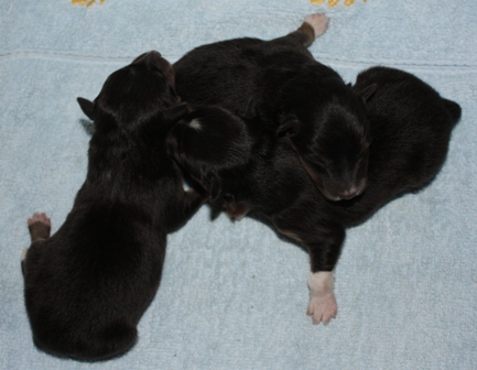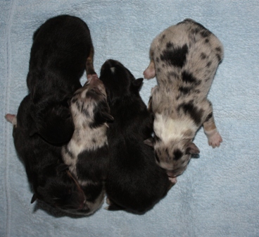 Fannin pennut (3 tricolour urosta ja 2 blue merle narttua) syntyivät 10.12.2011. Pennut ovat muuttaneet omiin koteihinsa.